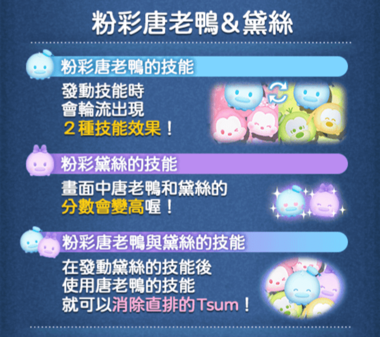 | 發動技能所需數量 | 唐老鴨:16個|黛絲:32個 |